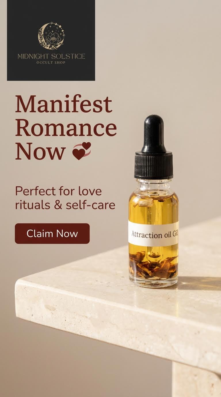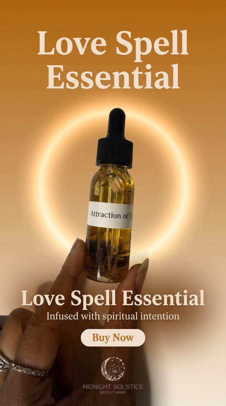 A handcrafted attraction oil designed to draw love, romance, and magnetic feminine energy into your life. This love manifestation ritual oil is infused with intention, ritual energy, and spiritual symbolism to support attraction spells, self love work, and divine feminine alignment.